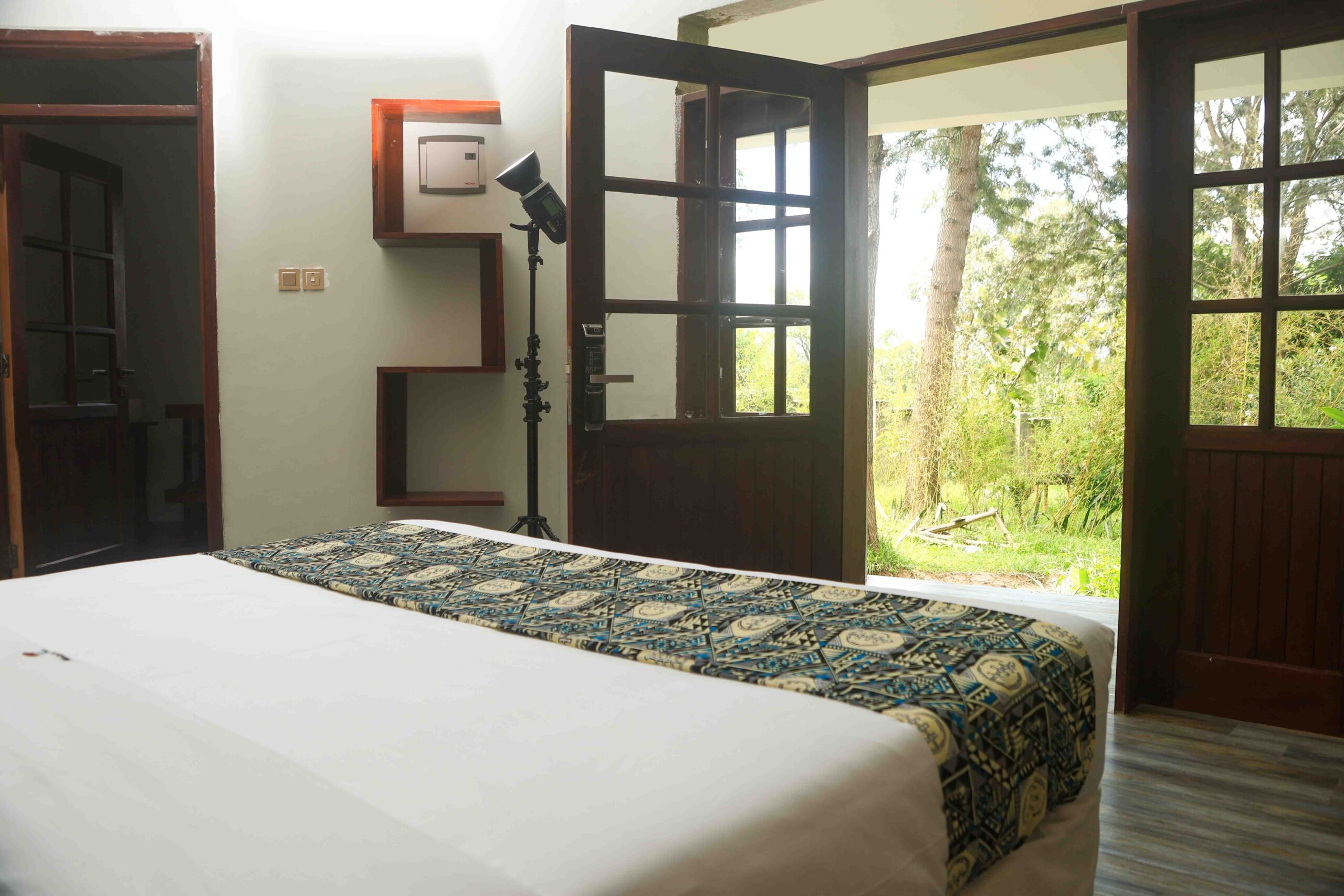 The dark wood panelling and furnishings, pure white-draped amazing Double Beds Room and luxurious bathroom evoke the charm of a secluded Meizi-Meera Eco Resort in the most beautiful upcountry area.